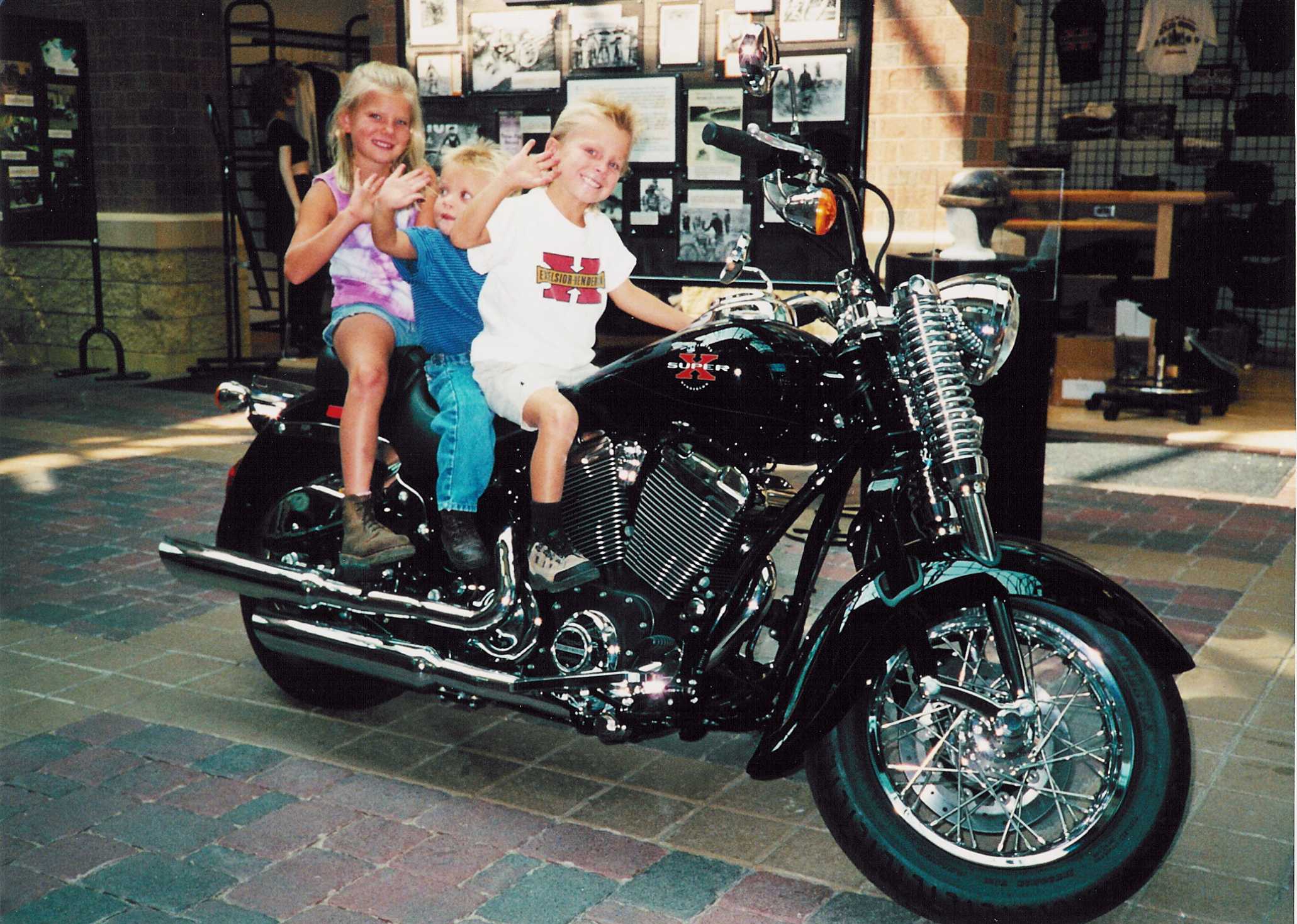 | Comments: | Glad to have 0001 back in the Hanlon family and Excelsior-Henderson. Dan Hanlons kids astride 0001 when at the factory in 2000. Hannah, Hayden, and Hunter. Good times on the X. |