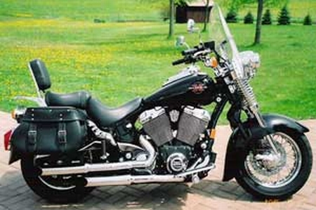 Sissy bar w/ pad, Luggage rack, Windshield, Driving lamps. Air filter kit, Tranny upgrade, Custom saddlebags w/ ghost brackets, Slash cut pipes