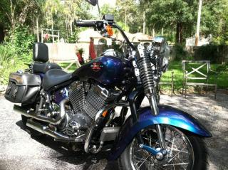 | Modifications/Accessories: | Driving lamps, Tall, modified sissy bar w/pad , E-H saddlebags, Slash cut pipes, Highway bars. tranny update, air filter kit |