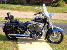 | Modifications/Accessories: | Windshield, Driving lamps, Saddlebags, Sissy bar w/ pad, Highway bars. Slash cut mufflers, tranny upgrade, shift kit, air filter kit, handlebar riser bushings, KoolBiker fan-forced oil cooler, Viton o-rings, scavenge pump pickup tube, Extra ground strap,crankcase vent, front and rear wheel bearings replaced by, Tuneboy AND SuperXtune software, 30-tooth output sprocket with X-Rated Speedometer calibrator, Jim McCarthy’s H-5 cams, John Jones’ long shot straight pipes, Stock mufflers with drilled out baffles, Spider’s Den saddle bags with E-H patches and Bag-Eez brackets, KuryAkyn ISO pegs on the highway bars, KuryAkyn ISO grips and passenger pegs, Solo seat luggage rack, chromed electronics cover,LED tag frame |