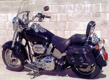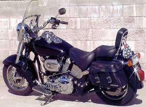 Windshield, Sissy bar w/ pad, Saddlebags. Slash cut pipes