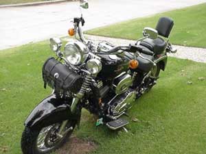 | Modifications/Accessories: | Driving lamps, Tool bag, Sissy bar w/ pad, Luggage rack. Slash cut pipes, tranny upgrade, air filter kit; Relocated crankcase breather |
