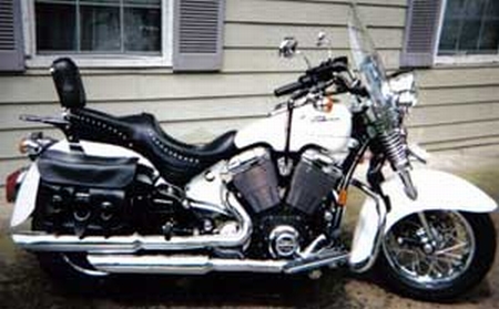 | Modifications/Accessories: | Windshield, Driving lamps, Sissy bar w/ pad, Saddlebags, Highway bars, Luggage rack. Tranny upgrade, Teflon bushing, shift kit, Custom fabricated remote oil cooler in right saddlebag, air filter kit, engine breather, Corbin seat, Custom paint, Upgraded engine gaskets and head bolts, New ECU tune |