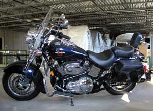 Windshield, Highway bars, Saddlebags, Sissy bar w/ pad, Oil cooler, Driving lamps, Highway bars