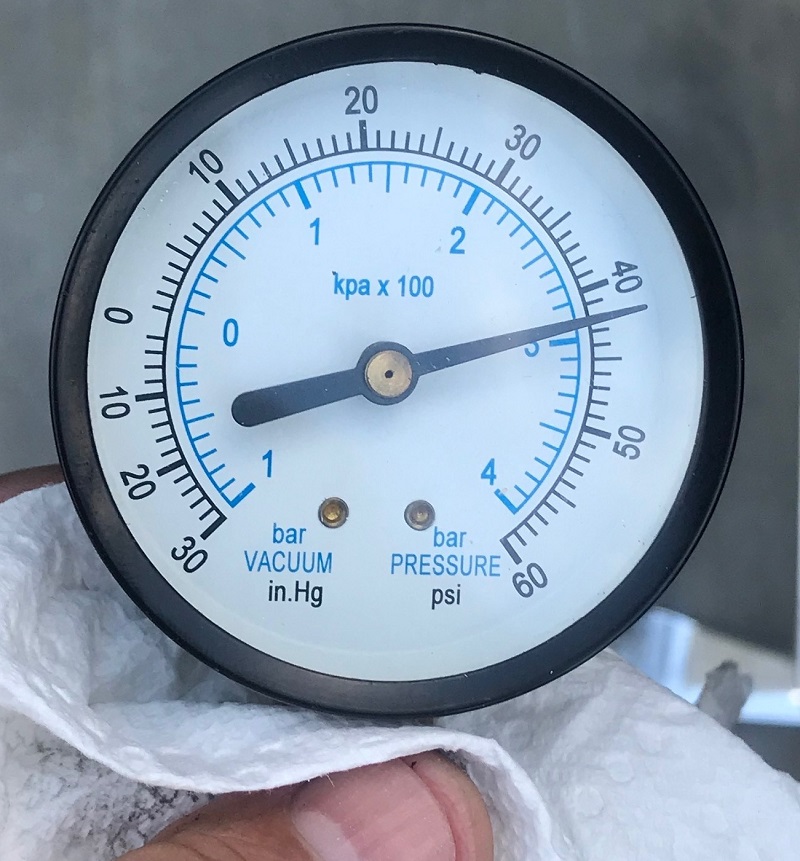 I took these pictures just now. Total time to test this pump was less than ten minutes. You really do need a pressure gauge to test this properly.