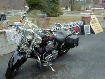 Driving lamps, Highway bars, Windshield, Saddlebags, Sissy bar w/ pad, Luggage rack, Slash cut pipes (and original pipes). GK tranny upgrade, Twin Jagg oil coolers, Wheel bearing update, Oil bushing update, New CPU tune