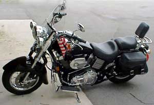 | Modifications/Accessories: | Windshield, Highway bars, Driving lamps, Sissy bar w/ pad, Luggage rack, Saddlebags, Slash cut mufflers (and original mufflers). Air filter kit, forced air oil cooler, front and back wheel hub updates, tranny bushing, Side car (added 08/2004) |