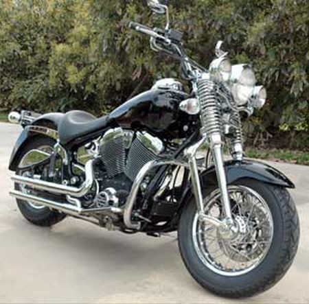| Modifications/Accessories: | Driving lamps, Highway bars (also have windshield, luggage rack, sissy bar w/ pad, saddlebags). tranny upgrade, rear wheel bearings, shift kit, air filter kit, engine breather, Jagg oil cooler, scavenger pump pick up tube and bushing, ignition switch, motor mounts, reinforced kick stand, slave cylinder, riser bushings, chromed rigid fork, 2000 model-year turn signals with clear lenses, narrow front ender, short shot gun pipes, chrome rear pulley, chrome electronics cover, oil sight glass, Deadwood handlebars, Custom paint with an ice-pearl ghosted X on the tank, so the bike looks black until a bright light brings out the X. |