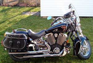 | Modifications/Accessories: | Windshield, Solo luggage rack, Sissy bar w/ pad (not installed),. East Coast comprehensive service package, Deadwood seat, Osprey limited saddlebags with ghost brackets and tool bag, Buckhorn handlebars, Custom shift linkage, shotgun pipes, Custom forward controls, Oil cooler with fan, Custom oil filter cover, Custom reservoir covers, Custom polished tank mount covers |