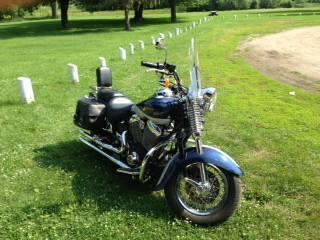 | Modifications/Accessories: | Windshield, engine guard, highway lights, updated air filter, oil cooler w/fan, relocated breather, backrest with pad, luggage rack, stirrup style passenger pegs, saddle bags, shotgun pipes(also slash cut pipes and OEM pipes), battery tender, leather front shock covers, center stand, soon to have 12v outlet and GPS mount. |
