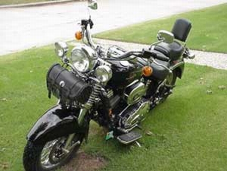 | Modifications/Accessories: | Driving lamps, Tool bag, Sissy bar w/ pad, Luggage rack. Slash cut pipes, tranny upgrade, air filter kit; Relocated crankcase breather |