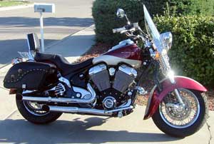 Windshield, Sissy bar w/ pad, Luggage rack. Aftermarket saddlebags, Slash cut pipes