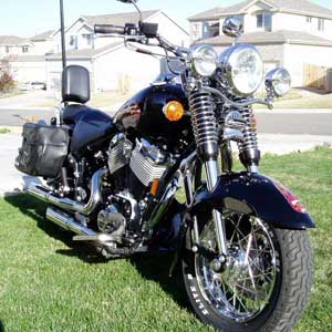 Saddlebags, Sissy bar w/ pad, Luggage rack, Driving lamps, Highway bars, Windshield, Slash cut pipes