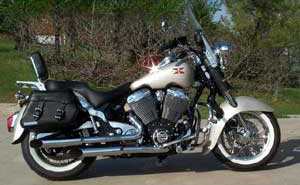 | Comments: | This picture is from March 2000 and the bike had only about 200 miles on it. Now with over 16,000 miles, it looks virtually the same, with some minor changes such as a Corbin seat and a couple of sets of whitewall tires. Whitewalls seem to wear out fast but you gotta have whitewalls! The bike carries the vanity plate *XNBAR*. I traded my first Super-X, #882 Green/Oyster with 6800 miles, or this gem at Northstar Power Sports, Albert Lea, MN in early January 2000. This bike was never crated; it was delivered to Albert Lea directly from the Belle Plaine factory. This bike has placed first in the Touring Class at both the 2000 Homecoming Rally and the 2001 X-Ride and Rally. With more than one bike in the garage, the Super-X is my preferred ride. |